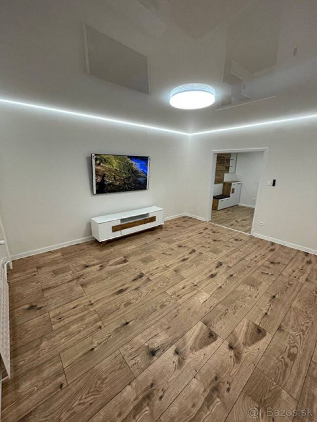 Popis bytu: izby sú neprechodné, nové rozvody elektriky, vody, odpadu. Nové vinylové podlahy, znížené stropy technológia napínacie stropy so zabudovaným led osvetlením, stierky nové biele, nové interiérové dvere s obložením zárubne, plastové okná so žalúziami, nová kuchynská linka do tvaru L (biely lesk) s led podsvietením kuchynskej linky, so zabudovanými spotrebičmi ako je chladnička s mrazničkou, indukčná varná doska, elektrická rúra, digestor, čierny granitový drez s batériou, umývačka riadu, pračka zabudovaná v kuchynskej linke, vchodové bytové dvere sú bezpečnostné. Na chodbe je vstavaná biela skriňa so zrkadlom a šatníková zostava. Kúpeľňa je murovaná s priestranným sprchovým kútom s vyhrievanou podlahou v kúpeľni a aj v sprchovom kúte. WC Geberit.