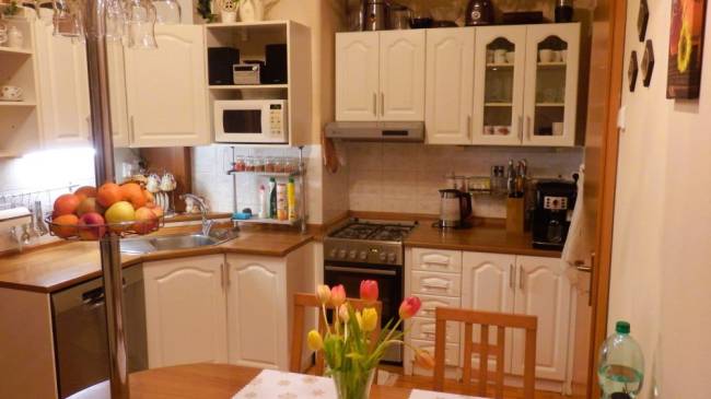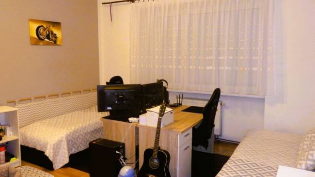 Byt sa predáva vyprataný so vstavanými skriňami a kuchynskou linkou. Podlahy laminátové a KD, nové stierky, rozvody el. energie medené, okná plastové vybavené sieťkami proti hmyzu.