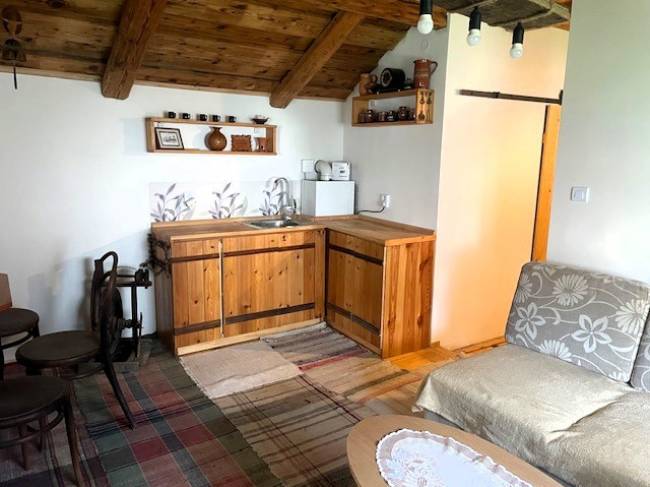 IBA U NÁS! Ponúkame exkluzívne na predaj zariadený rodinný dom/chalupu s 2 samostatnými bytovými jednotkami v Hronci. 1-izbová časť je novopostavená so samostatným vstupom a pozostáva z chodby, kúpeľne, izby spojenej s kuchyňou, pivnice a terasy. 3-izbová časť je dvojpodlažná so samostatným vstupom a na prvom podlaží je chodba, kuchyňa, kúpeľňa, obývačka s krbom a v podkroví sú 2 izby a šatník. Rodinný dom je odizolovaný a prestrešený novou plechovou strechou Maslem so zateplením Nobasil hr. 30 cm, komín je vyvložkovaný. Zrekonštruovaná je tiež voda, odpad a medená elektrika. Kúrenie v obidvoch častiach zabezpečuje nový plynový kotol s prietokovým ohrevom vody. Dom je napojený na vodu, elektrinu 220 aj 400 V, plyn, kanalizáciu a internet. Pri dome je parkovisko pre 2 autá. Popri rovinatom pozemku s rozlohou 671 m2 preteká potôčik. Dom je ideálny na bývanie, aj na prenajímanie. Obec Hronec sa nachádza v krásnom horskom prostredí s množstvom možností na oddych. Pár km sa nachádza znále biatlonové stredisko Osrblie a lyžiarske strediská Tále a Mýto pod Ďumbierom.