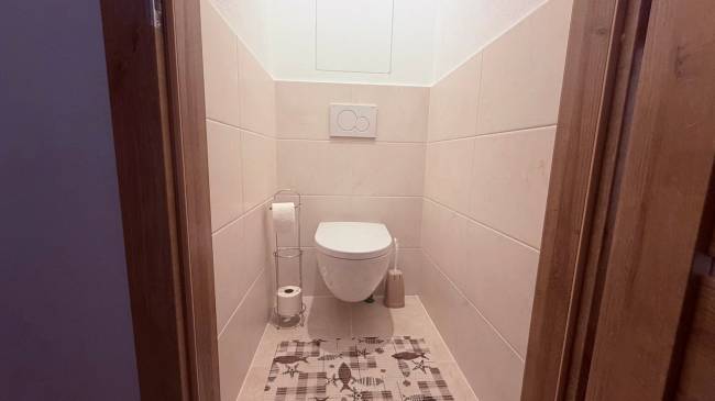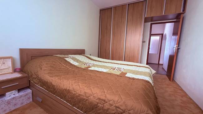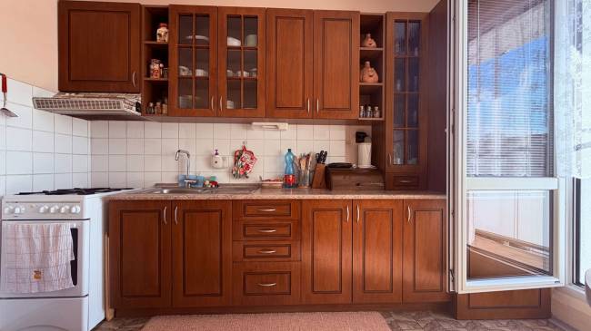 V byte je dostatok úložného priestoru: 3x vstavené skrine v chodbe, spálni a detskej, ktoré boli robené postupne nedávno cca 3 roky dozadu. Pred pár mesiacmi sa komplet rekonštruovala kúpeľňa s WC, osobitne je WC - geberit, kúpeľňa je s murovaným priestranným kútom so zasklením. Menili sa aj nové dvere na WC a kúpeľni, ktoré sú vkusné, ostatné dvere sú pôvodné, ale zato vo veľmi dobrom stave. Kuchynská linka je zánovná (drevo masív), varenie je na plyne. Kúrenie je ústredné s meračmi tepla na radiátoroch. Okná v celom byte sú plastové biele so žalúziami a sieťkami proti hmyzu. V byte sú stierky v dobrom stave. Čo sa týka podláh tak v izbách sú koberce pod nimi linoleum, chodba a kuchyňa linoleum.