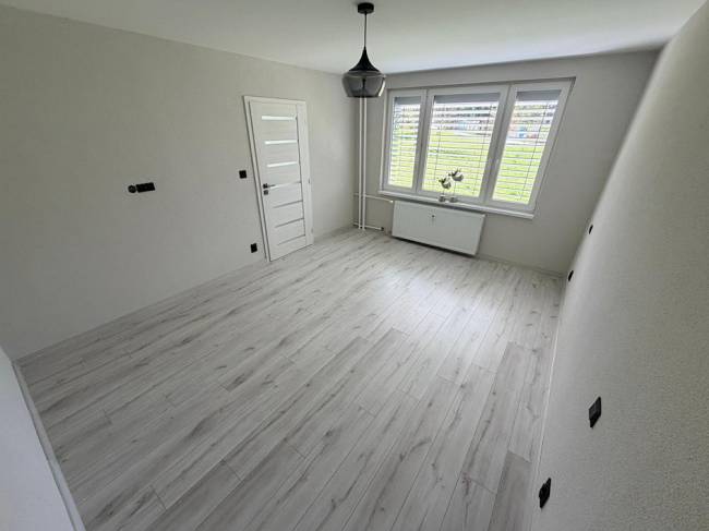 • odstránené pôvodné podlahy, nivelizácia a nová jednotná laminátová podlaha v celom byte