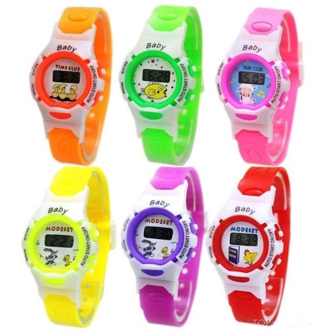 Predám nové detské LED hodinky v pekných farebných kombináciách s obrázkami zvieratiek vo farebnom ciferníku priemeru 3, 2 cm. Farebný remienok dĺžky 22 cm je nastaviteľný na rôzny obvod detskej rúčky. Pekný darček pre vaše deti ako aj doplnok k oblečeniu